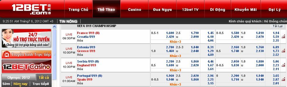 21h00 ngày 6/7, sân Kadriorg: Estonia (U19) – Hy Lạp (U19) (-0.56*1:0*0.46)